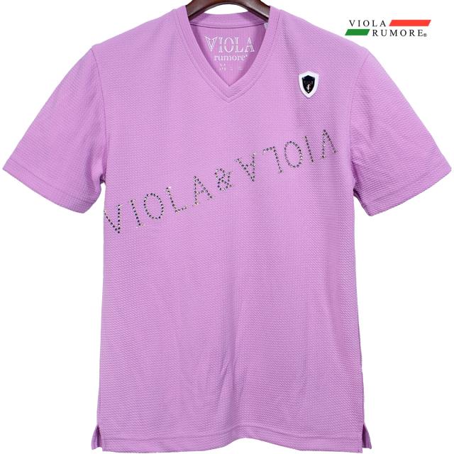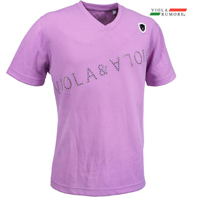 VIOLA rumore ヴィオラ ビオラ Tシャツ 半袖 Vネック ラインストーン メンズ(ラベンダー紫) 52324