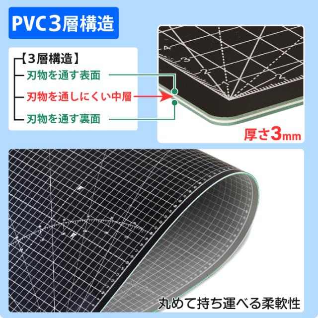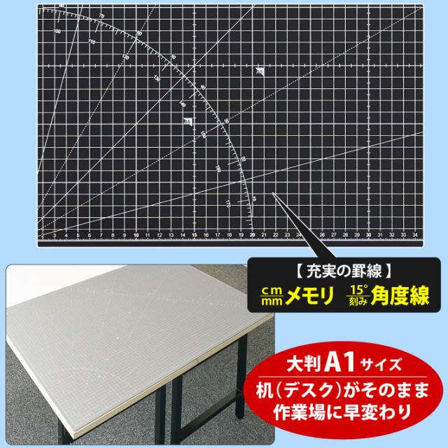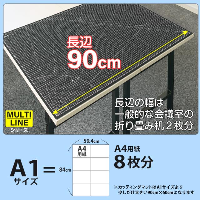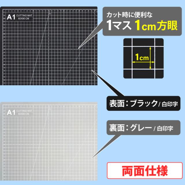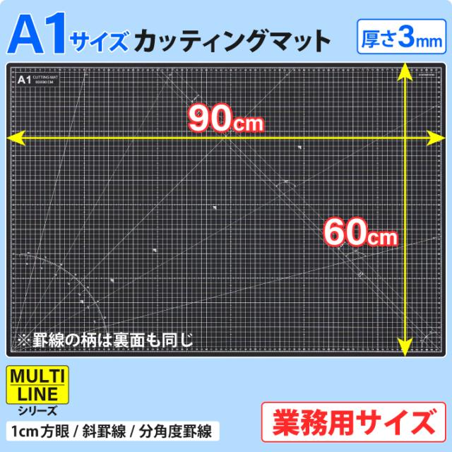 カッティングマット A1 サイズ 60cm x 90cm x 3mm 【1cm方眼】特大 両面メモリ 業務用 工作 カッターマット デスクマット 両面 両面目盛り 切り出し 造形 裁縫 型紙 作業台 方眼 プラモデル 600 900 600mm 900mm 3mm 0.6m 0.9m 【ブラック / グレー】(MULTI LINEシリーズ)