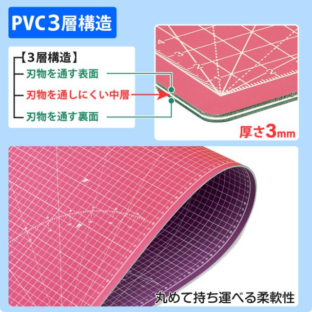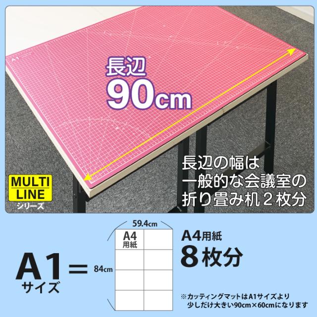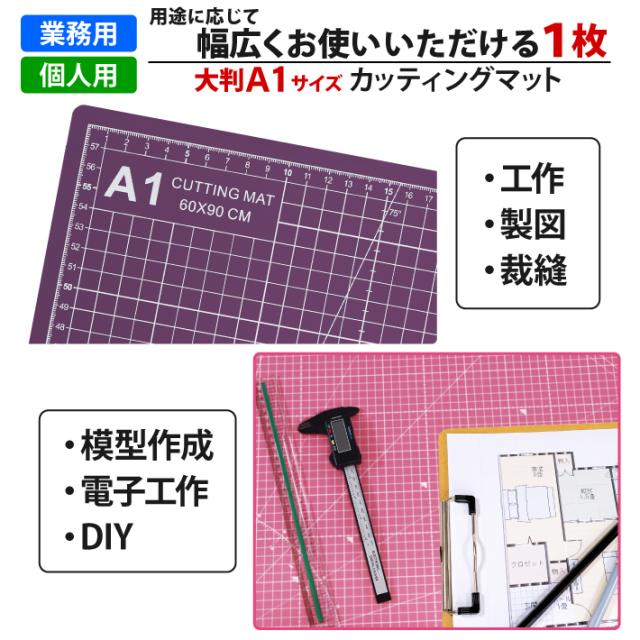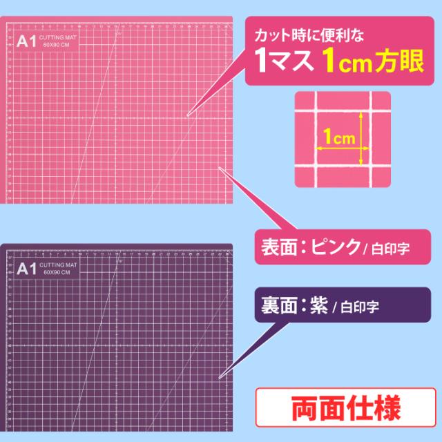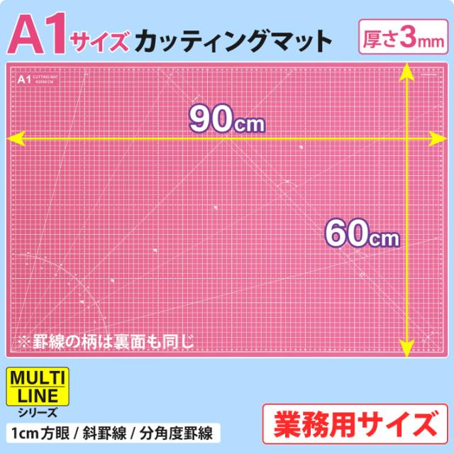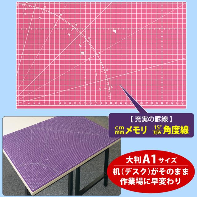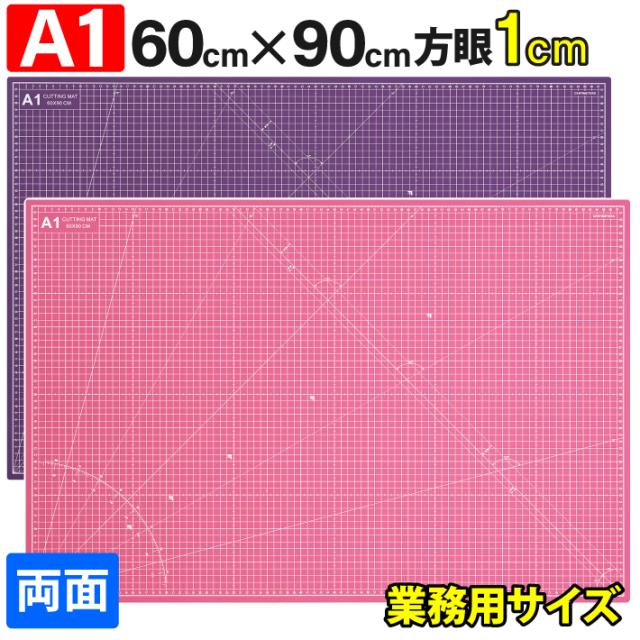 カッティングマット A1 サイズ 60cm x 90cm x 3mm 【1cm方眼】特大 両面メモリ 業務用 工作 カッターマット デスクマット 両面 両面目盛り 大判 切り出し 造形 裁縫 型紙 作業台 方眼 プラモデル 600 900 600mm 900mm 3mm 0.6m 0.9m【ピンク / 紫】 (MULTI LINEシリーズ)