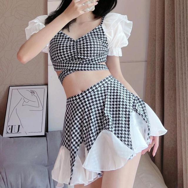 ファッション性に富んだ千鳥格子で洋服感覚のスイムウェアセット