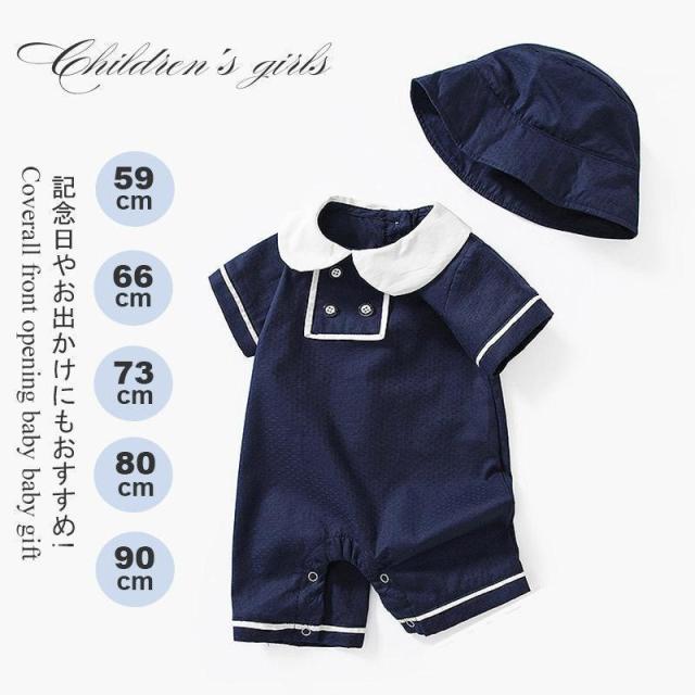 ベビー服 半袖 帽子のセット フォーマル ロンパース カバーオール 赤ちゃん 出産祝い 男の子 女の子 オールシーズン 子供服 新生児 こども 子ども 60 70 80