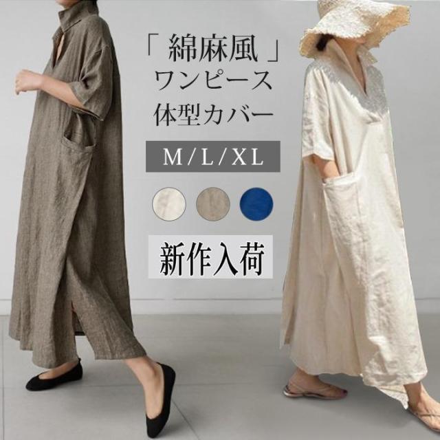 シャツワンピ ワンピース 夏 レディース 半袖 ロングシャツワンピース 夏ワンピ 夏ワンピ 羽織り綿麻 ワンピース 体型カバー シンプル 涼感