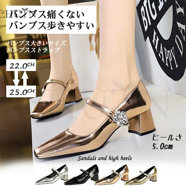 夏パンプスストラップ疲れないパンプス レディース パンプス スクエアートゥ春夏 靴 美脚5cm ヒール太めヒール 歩きやすいパンプス 結婚式 入学式 通勤