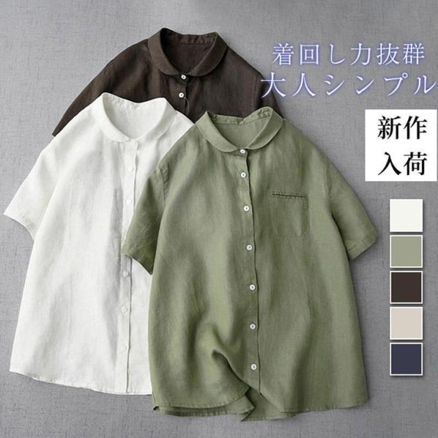 シャツ 半袖 ブラウス レディース サマー シャツチュニック Tシャツ 無地 丸襟 綿 トップス ナチュラル 通勤 OL オフェス 着痩せ ゆった カジュアル シンプル