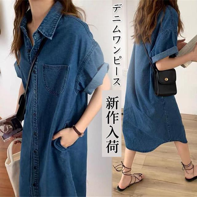 デニムワンピース レディース 40代 ワンピース 夏 シャツワンピース 半袖 キレイめ ロング 上品 着痩せ ゆったり 通勤 30代 50代 上品 フォーマル レトロ
