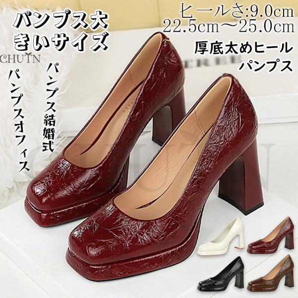 夏厚底パンプス歩きやすい パンプス大きいサイズ ウェディングパンプス美脚ハイヒール太めヒール入学式パンプス結婚式 成人式 卒業式 春パンプス黒~25cm4色