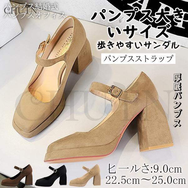 夏パンプスストラップパンプスハイヒールパンプスサンダル太めヒール パンプス通勤美脚パーティーパンプススクエアートゥ厚底パンプス結婚式 コスプレパンプス