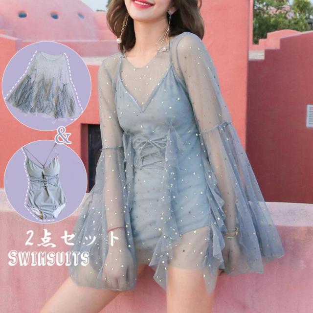 新作水着 韓国ファッション 水着セット 体型カバー ラメ入り シースルー トップス 海 リゾート 水着 20代 30代