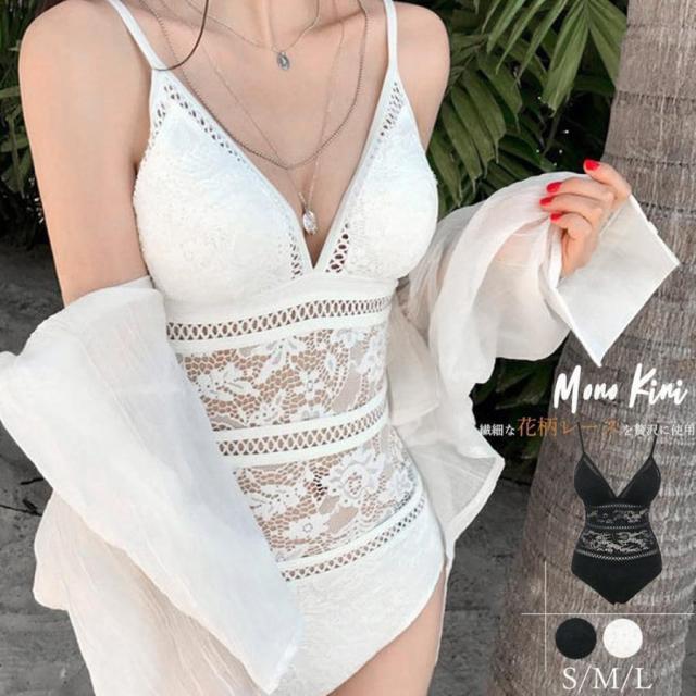 繊細な花柄レースを贅沢に使用、透かしDesignで女子力をアピールするモノキニ水着