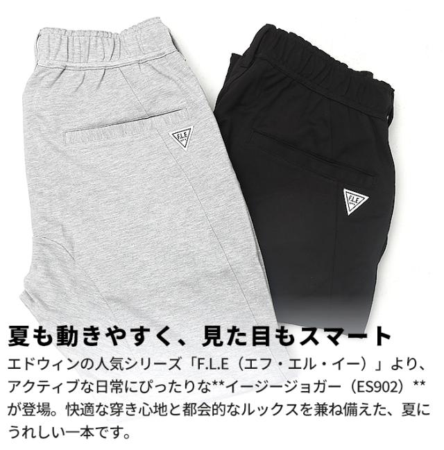 エドウィン フリー ジョガーパンツ メンズ グレー 黒 ES902 イージーパンツ スリムテーパード EDWIN F.L.E 夏 ストレッチ 伸びる 楽 スポーツ 運動 パンツ ウエストゴム ブランド 父の日