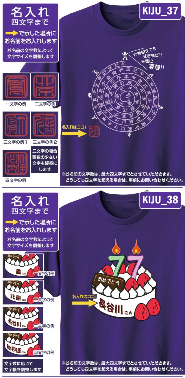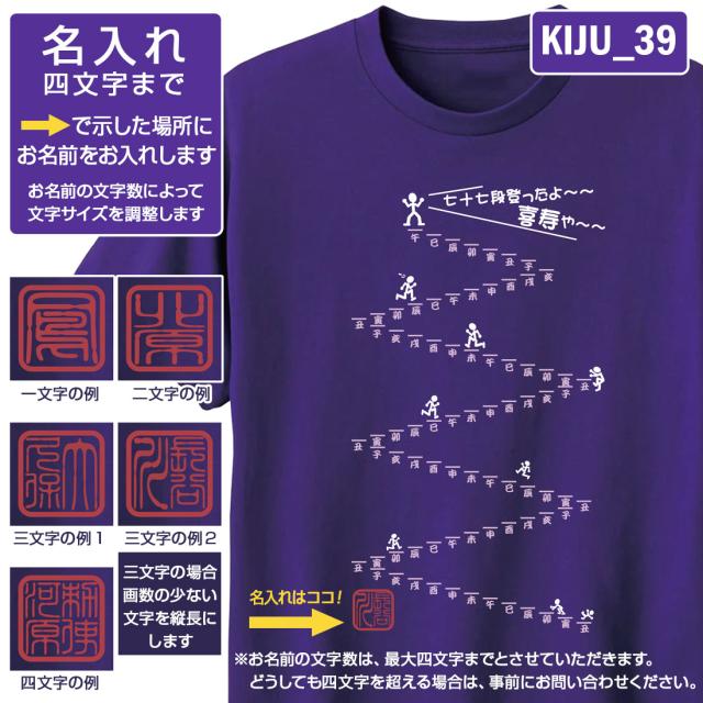 喜寿Tシャツ KIJUシリーズ 名入れ 喜寿祝い 喜寿 Tシャツ tシャツ おもしろい プリント 77歳 お祝い プレゼント ラッピング 紫 パープル おしゃれ サプライズ メンズ レディース 男性 女性 父 母 上司 メール便 送料無料