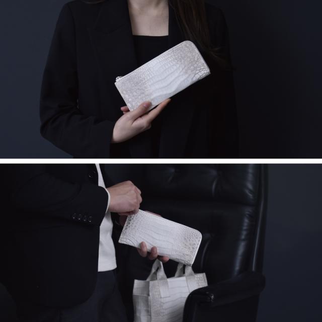 新作 クロコダイル 長財布 レディース メンズ L字ファスナー ヒマラヤ 染め 本革 薄型 ワニ革 白 ホワイト 軽い 財布 L字 鰐革 スリム 軽量 大容量 薄い カード収納 男女兼用 軽量 リアルレザー 男性 女性 人気 金運 風水 開運 プレゼント ギフト 送料無料