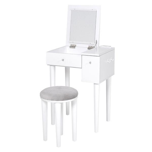 ●ミラーを閉じるとデスクとして使用可能なドレッサー。ミラーの角度調節ができるので顔が見やすい設計です。