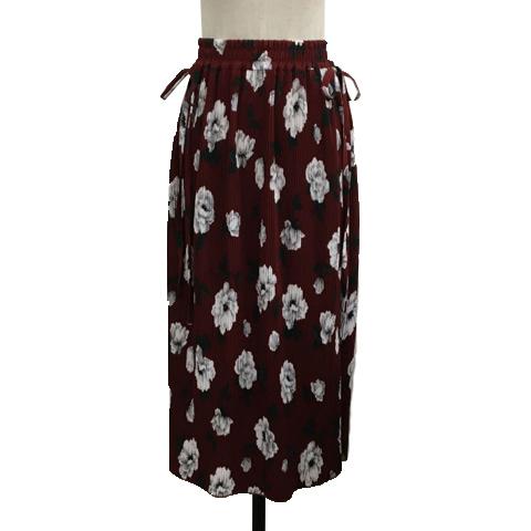 【中古】ココディール スカート プリーツ フレア ロング 花柄 フラワー リボン スリット ウエストゴム 2 赤 白