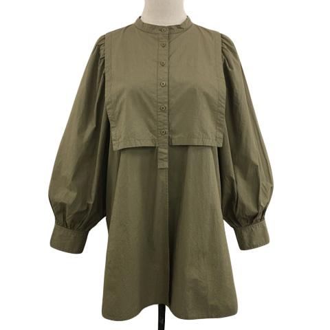 【中古】フリークスストア チュニック ブラウス シャツ バンドカラー 無地 長袖 F 緑 グリーン レディース