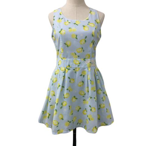 【中古】アンクルージュ ワンピース フレア ミニ タック 総柄 プリント ノースリーブ M 水色 黄 ライトブルー