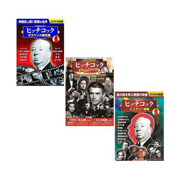 レベッカ/バルカン超特急/海外特派員/逃走迷路/疑惑の影/ロープ/見知らぬ乗客/汚 名/断 崖/白い恐怖私は告白する/山羊座のもとに/舞台恐怖症/三十九夜/救命艇/サボタージュ/暗殺者の家/間諜最後の日/第3逃亡者/恐喝(ゆすり)パラダイン夫人の恋、スミス夫妻、巌窟の野獣、スキン・ゲーム、ウィーンからのワルツ、第十七番、殺人 、リッチ・アンド・ストレンジ、ジュノーと孔雀、エルストリー・コーリング1BOXあたり