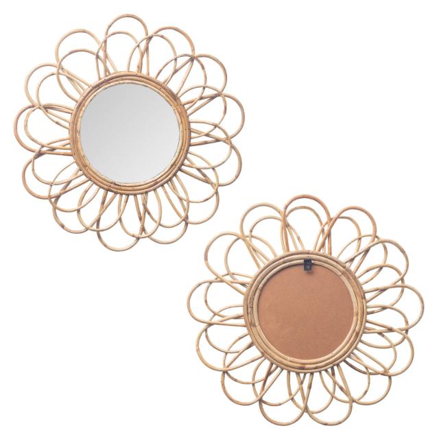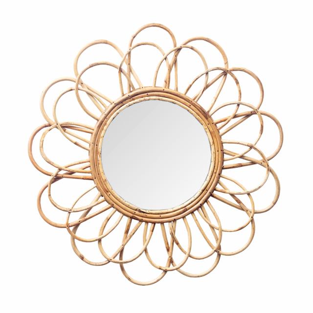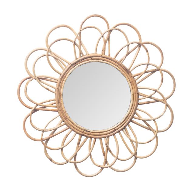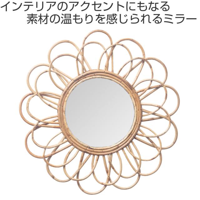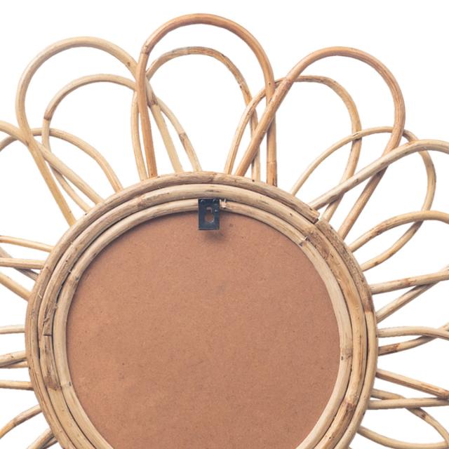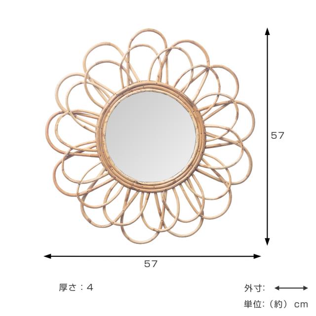 ウォールミラー ラタン 57cm ペタル ( ミラー 壁掛け 鏡 円形 花 インテリアミラー 籐 かがみ フック付 天然素材 韓国風 完成品 )