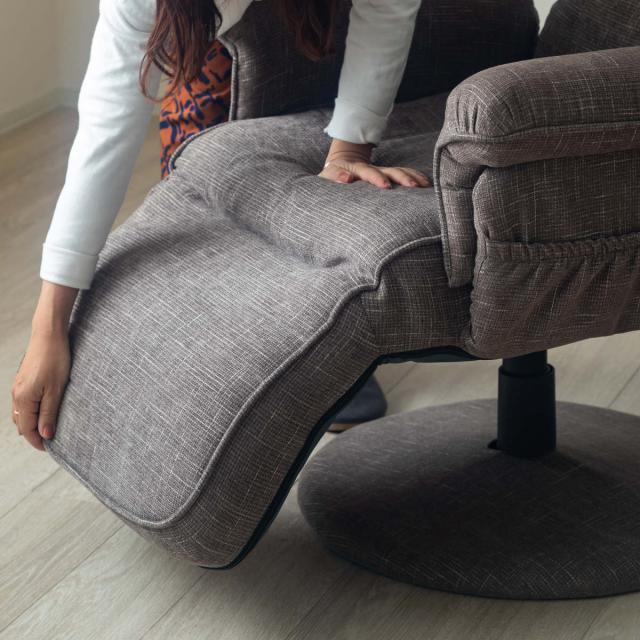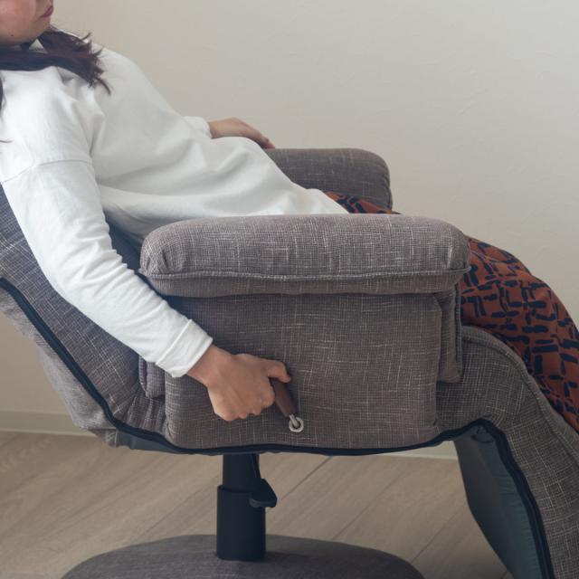 ずっと座っていたくなるハイバックタイプの高座椅子です。レバー式無段階ギア、14段階ヘッドリクライニング、3段階フットリクライニング、座面高調節、360度回転式の機能を兼ね備えています。その時の気分でお好みの角度に調節でき、リラックスした時間をお過ごしいただけます。