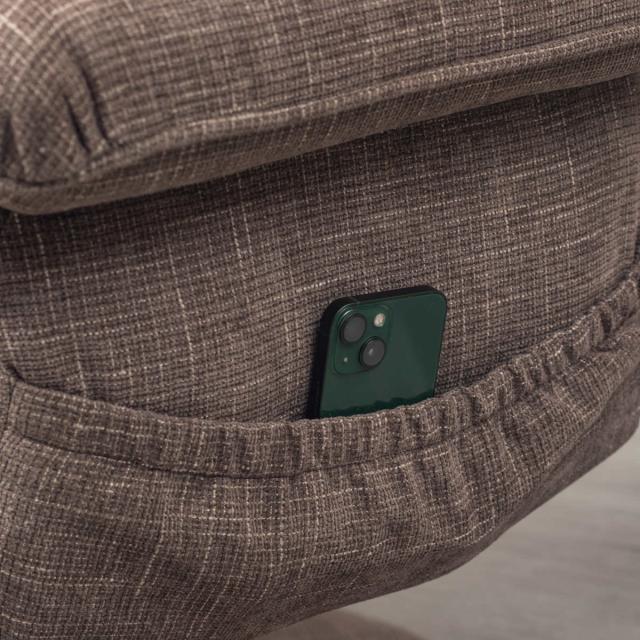 左サイドに収納ポケットが付いています。携帯やタブレット、リモコンなどを座ったままサッと手に取ることができます。