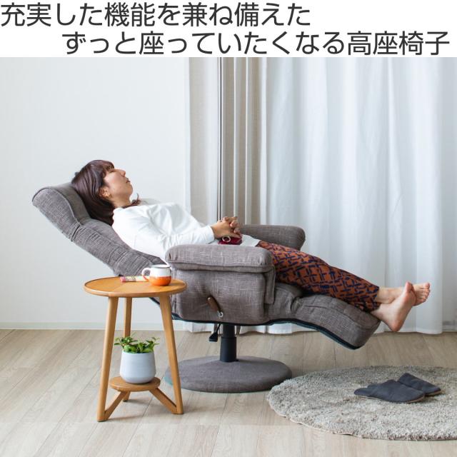 高座椅子 ハイバックタイプ 回転 昇降式 座面高42〜48cm ジネシー ( 座椅子 無段階リクライニング ヘッドレスト フットレスト 角度調節可能 肘掛け チェア イス 椅子 リラックス 収納ポケット ファブリック ポケットコイル )
