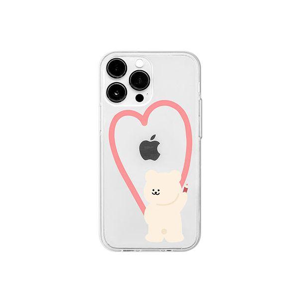 16823833I14P 直送 代引不可 168cm ソフトクリアケース for iPhone 14 くまちゃんのお絵描きピンクハート 背面カバー型