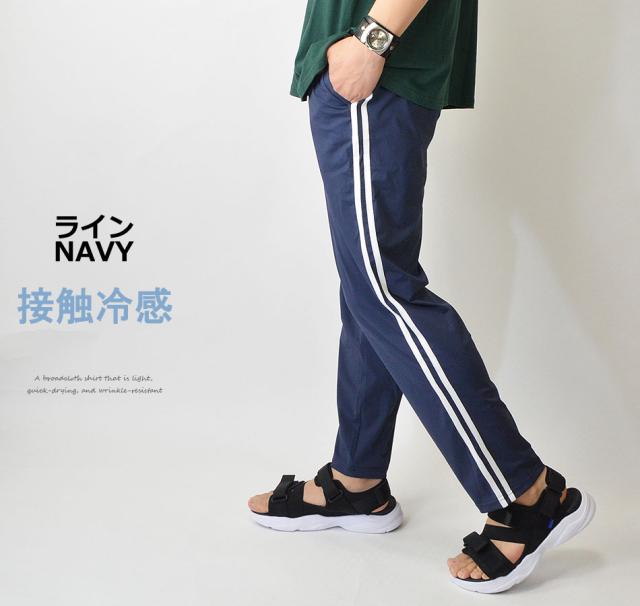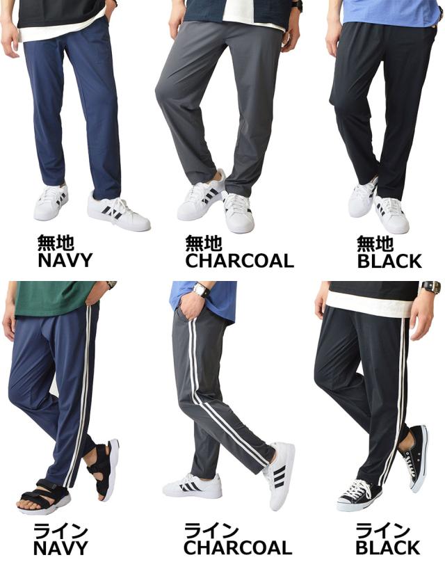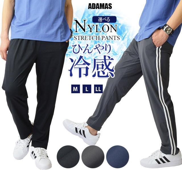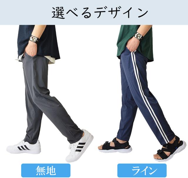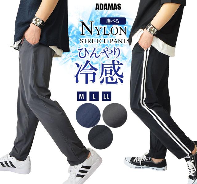 接触冷感 トラックパンツ ナイロンストレッチパンツ メンズ 冷感 ひんやり ストレッチ 軽量 薄手 春 夏 秋 スリムパンツ 無地 ライン入り ジャージパンツ 無地パンツ ラインパンツ ズボン スポーツ 運動 運動服 トレーニング ジム ジョギング ゴルフ ウエストゴム 黒 紺 新作