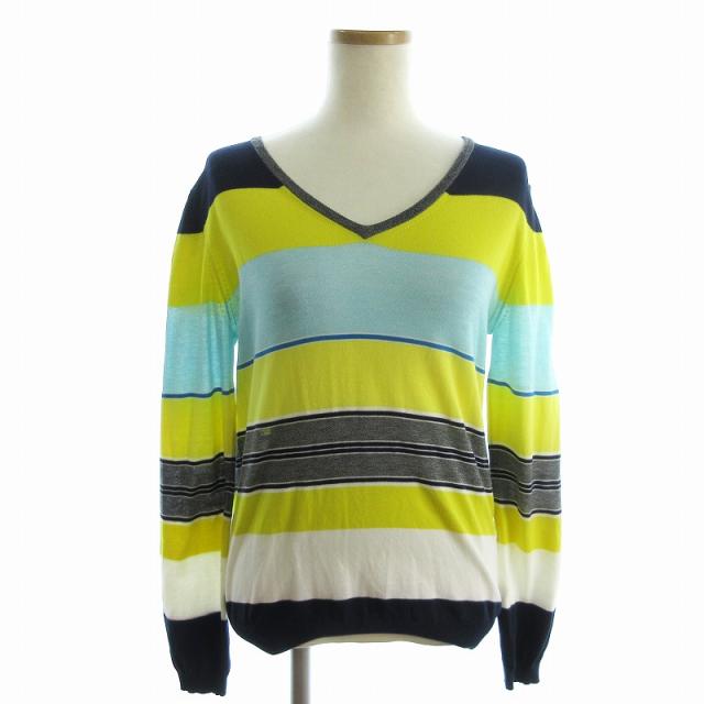 【中古】マカフィー MACPHEE トゥモローランド ニットソー カットソー 長袖 Vネック ボーダー マルチカラー M