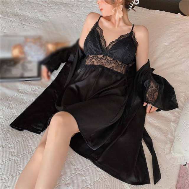 ベビードール セット セクシー ルームウェア Vネックガウン付き レース刺繍 スリップ 2点セット 透け セクシーランジェリー 大人 パジャマ ワンピース かわいい シースルー ハーフスリップ 寝巻き ネグリジェ ナイトウェア JITIFA