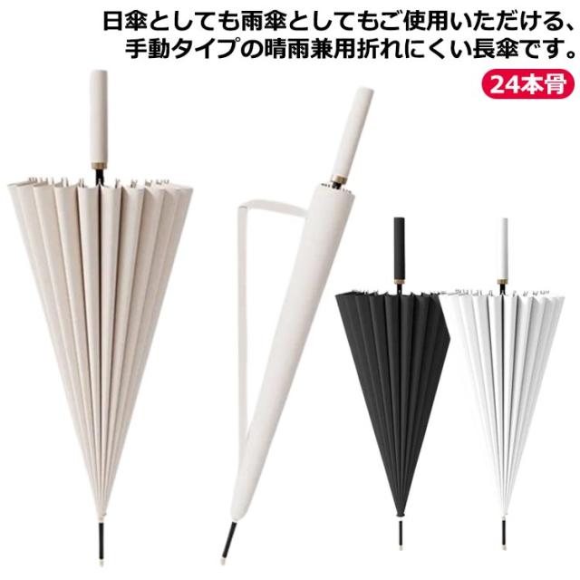 傘 長傘 24本骨 手動 レディース 雨傘 日傘 メンズ 軽量 晴雨兼用 撥水 梅雨対策 耐風 丈夫 大型 大きい 通勤 通学 男女兼用 おしゃれ 大きいサイズ 豪雨対策 便利グッズ シンプル ブラック オフホワイト ホワイト プレゼント