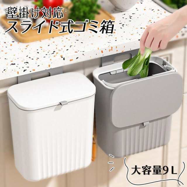 ゴミ箱 壁掛けゴミ箱 ふた付き 壁掛け キッチン 9L 広口 壁掛け式 ぶら下げ 蓋付き 生ごみ シンプル キッチン調理台 シンクの扉に 引出し 台所