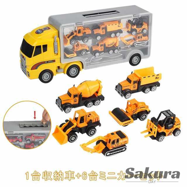 1台収納車6台ミニカーセット 運搬車 働く車 おもちゃ トイカー 車 おもちゃ 大きめ 工事カー 合金 作業車両 建設車両 火事車 警察車 ミリタリー車 丈夫 ミニカー 収納 男の子 こども 子供 玩具 クリスマス プレゼント