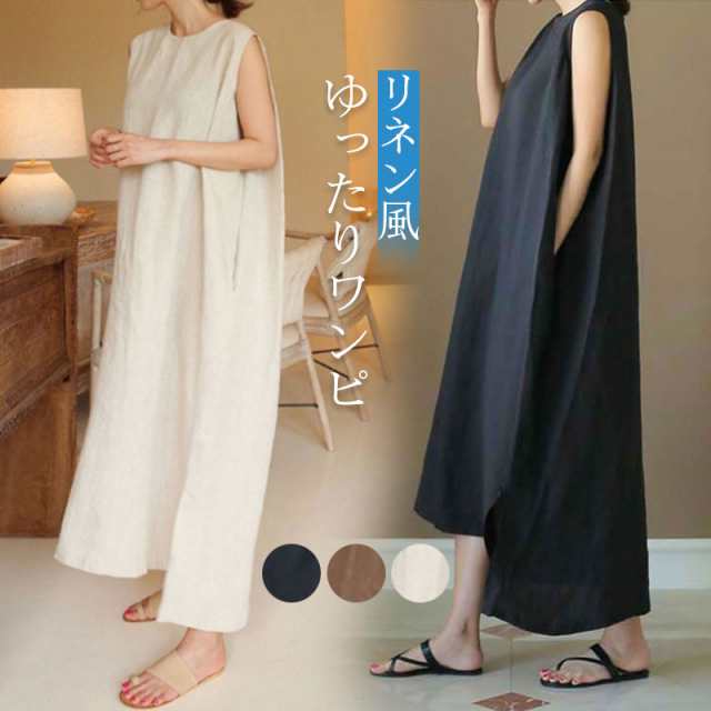 夏の新作 ワンピース ノースリーブ きれいめ ロング レディース リネン風 ワンピース 体型カバー 50代 40代 30代 お洒落