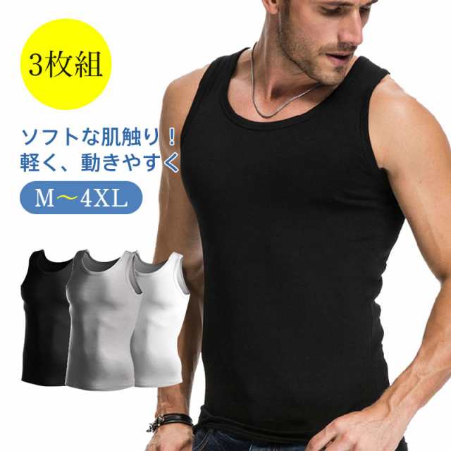 春夏新作 タンクトップ メンズ 無地 3枚組 インナー 細身 タイト 黒 白 グレー カットソー トップス カジュアル シンプル