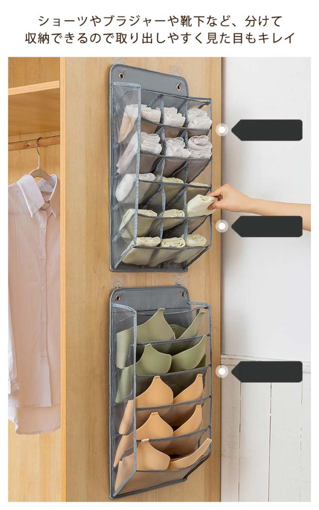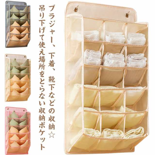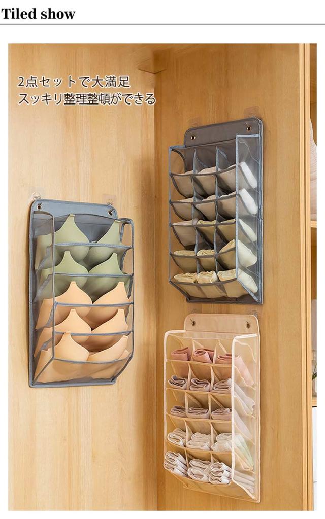 仕切り 靴下収納 ウォールポケット 下着収納 ハンガー式ラック 下着ケース 隙間収納 壁掛け収納 クローゼット 大容量 押入れ ブラの型崩れ防止 収納ケース ブラジャー 仕切り 収納 おしゃれ メッシュ ポケット 通気性 北欧 吊り下げ収納