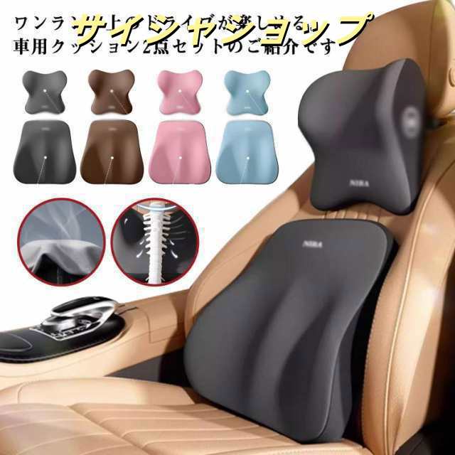 腰枕+首枕 車 クッション 腰痛クッション 運転 クッション クッション ヘッドレスト 車 腰 ヘッドレスト クッション 車 シートクッション 低反発クッション 腰枕 背もたれ 腰当て ネックパッド カークッション 首枕 低反発 通気性 車用品 (ロゴランダムです)