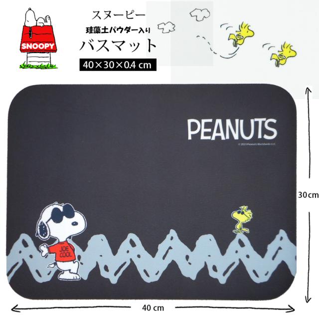 送料無料 スヌーピー バスマット SNOOPY 吸水 速乾 珪藻土パウダー入り 足ふきマット 滑り止め ソフトタイプ 脱衣所 浴室 水切りマット コンパクトサイズ 一人暮らし かわいい バス サングラス ウッドストック joecool ジョークール ブラック 黒 チャコールブラック こげ茶