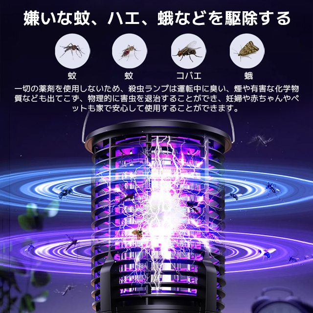 最安挑戦 冬新作 送料無料 新作 電撃殺虫器 蚊取り器 虫よけ 虫除け 蚊 コバエ ハエ 電気 UV光源誘引式虫捕り器 殺虫 ライト 虫対策 駆除 避け 静音 強力 安全 安心 薬剤不要 無害 夏 吊り下げ 置き型 アウトドア キャンプ 屋内 屋外