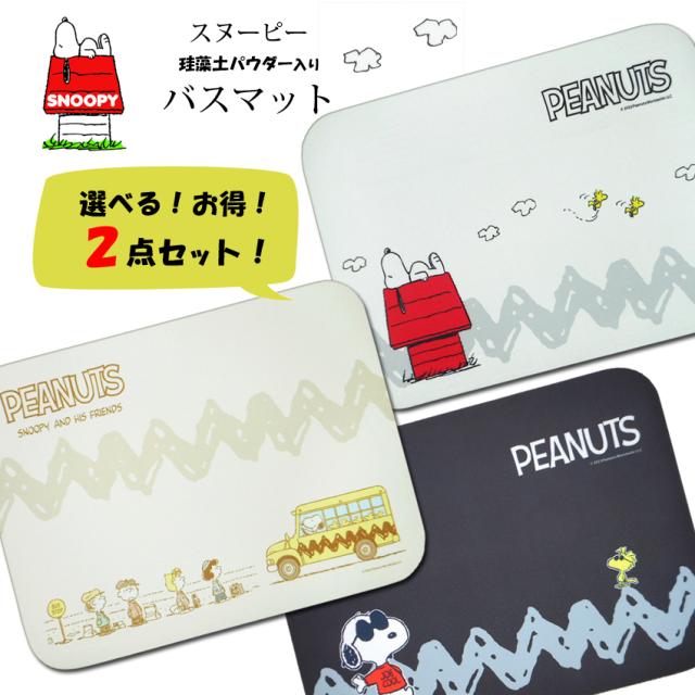 送料無料 スヌーピー バスマット 2点セット SNOOPY 吸水 速乾 珪藻土パウダー入り 足ふきマット水切りマット コンパクトサイズ 一 滑り止め ソフトタイプ 脱衣所 浴室 人暮らし かわいい バス 赤い屋根 ウッドストック ファミリー 脱衣所 ホワイト 白