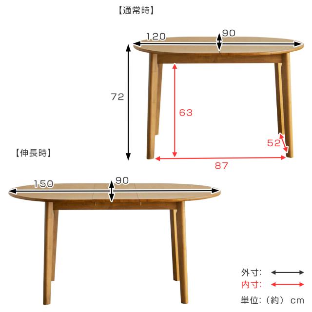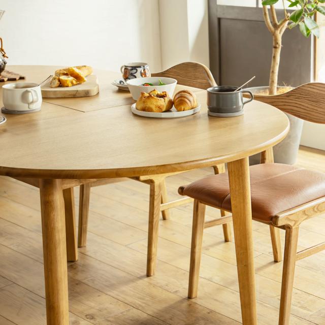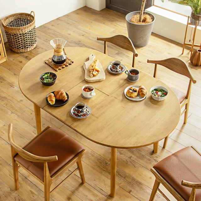 ダイニングテーブル 伸長式 幅120cm 幅150cm 楕円型 アルグ ( テーブル 食卓テーブル 丸 2人用 4人用 机 木製 楕円 円形 伸縮テーブル 天然木 天板 伸長 エクステンションテーブル ダイニング 食卓 おしゃれ 省スペース )