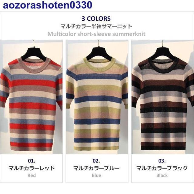 商品名:マルチカラー半袖サマーニット/Multicolor short-sleeve summerknit