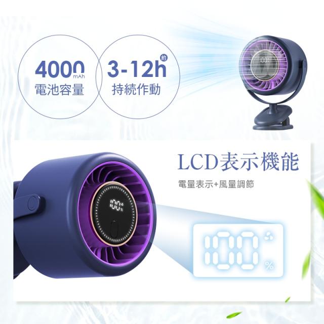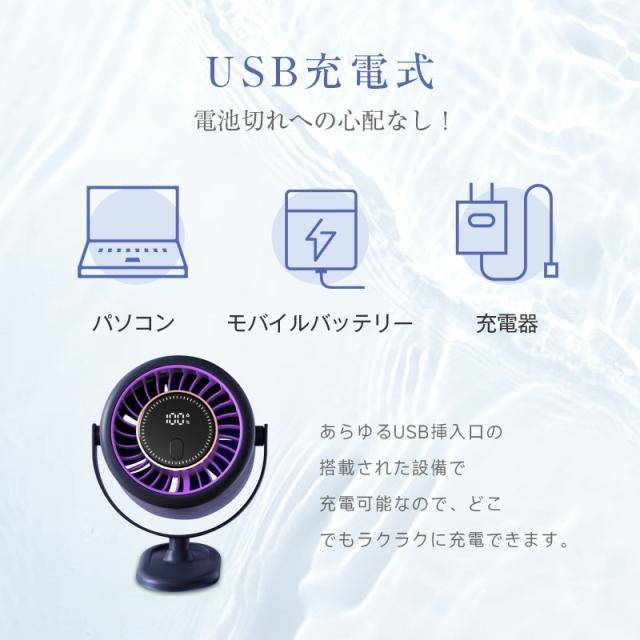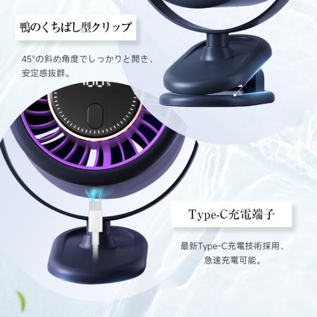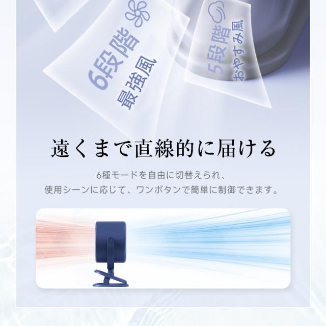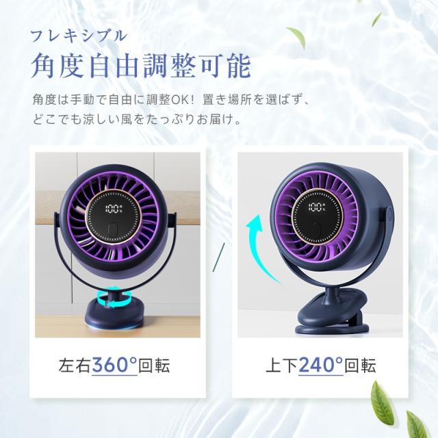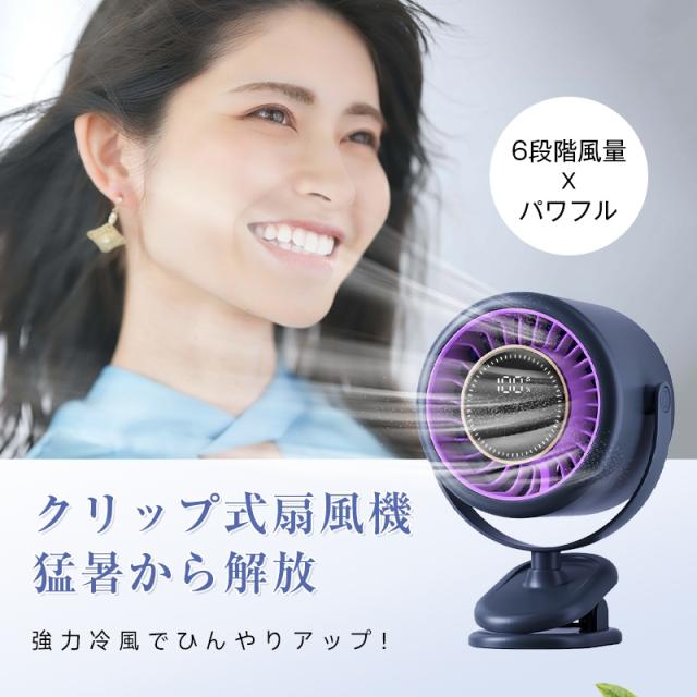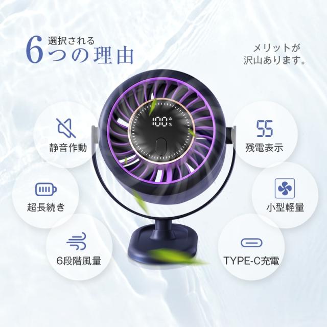 クリップ式 扇風機 サーキュレーター【2025年夏・新製品】 ミニ扇風機 卓上 静音 DCモーター パワフル送風 自動OFF 6段階風量 コードレス 2WAY 大容量電池 4000mAh USB充電 Type-C 全方位対応 残電量表示 軽量 コンパクト 節電 熱中症対策【PL保険加入済み製品・安心】