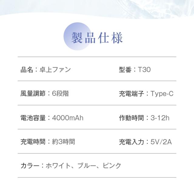 【パッケージ内容】扇風機本体、Type-C充電ケーブル、日本語取扱説明書。
