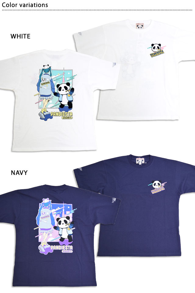 和柄ブランド【錦】の姉妹ブランドとして誕生した、お茶目なパンダをモチーフとした【PANDIESTA JAPAN】より「PDJガール Part2 半袖Tシャツ(585564)」のご紹介です。 今や、錦の定番モチーフとなった「錦PANDA」!! 今回はデートを楽しむパンディエスタとPDJガールを描いた、ゆめかわカラーがキュートな半袖Tシャツです。 背中には手をつないで街を歩く二人の姿が描かれています。 パンディエスタは刺繍、その他はプリントを用いて表現しました。 フロント左胸には、パンダのアイコンをワンポイントで刺繍。 袖にはロゴをポップにプリントしました。 夏のアイテムとして半袖Tシャツは何枚でも持っておきたいアイテムの一つ。 | |||||||||||||||||||||||||