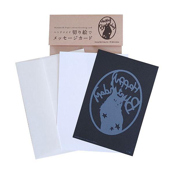 MSG-K004 直送 代引不可 トラストプリンティング ハンドメイド切り絵でメッセージカード ハガキ Happy Birthday ねこ・円 MSG