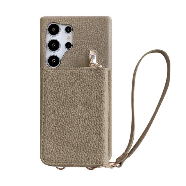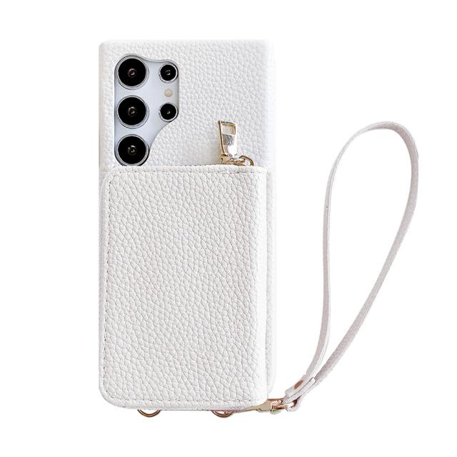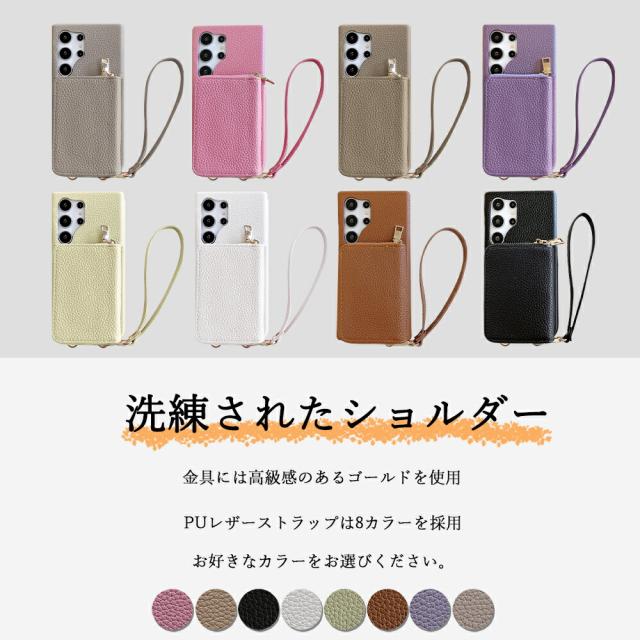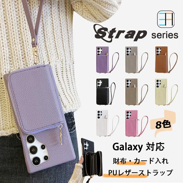 Galaxy S24+ (Plus) 対応 ライチ風 ストラップ付き 財布背面収納カードポケット ICカード おしゃれ スタンド付き スマホケース s24+ ケース ギャラクシーs24+ケース galaxys24+ スマホケース 8色