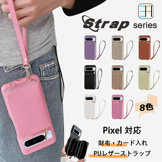 Google Pixel8 対応 ライチ風 ストラップ付き 財布背面収納カードポケット ICカード おしゃれ スタンド付き スマホケース Pixel 8 カバー Pixel8 ケース Pixel8 カバー Pixel8ケース Pixel8カバー ピクセル8 スマホケース 8色