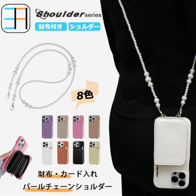 Galaxy S24+ (Plus) 対応 ライチ風 パールショルダーストラップ付き 財布背面収納カードポケット ICカード おしゃれ スタンド付き スマホケース s24+ ケース ギャラクシーs24+ケース galaxys24+ スマホケース 8色