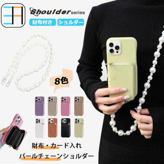 iPhone14 pro Max 対応 ライチ風 パールショルダーストラップ付き 財布背面収納カードポケット ICカード おしゃれ スタンド付き スマホケース iPhone14プロマックスケース アイフォン14promax アイホン14promax スマホケース 8色