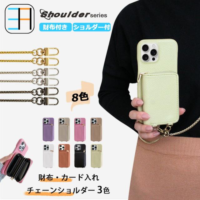 iPhone16 pro 対応 ライチ風 チェーン ショルダー付き 財布背面収納カードポケット ICカード おしゃれ スタンド付き スマホケース アイフォン16pro アイホン16pro アイフォン16pro iPhone16pro アイフォン スマホケース 8*3色